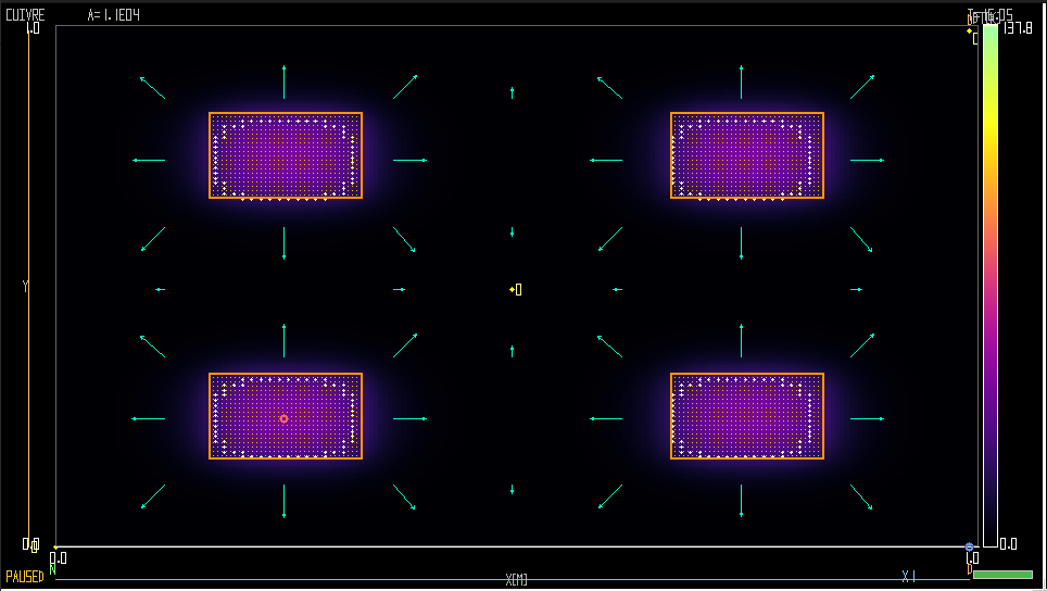 - 2D Plate Simulation: Radial heat diffusion with 4 corner sources
